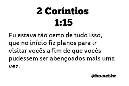 Eu estava tão certo de tudo isso, que no início fiz planos para ir visitar vocês a fim de que vocês pudessem ser abençoados mais uma vez. (2 Coríntios 1:15 NTLH)