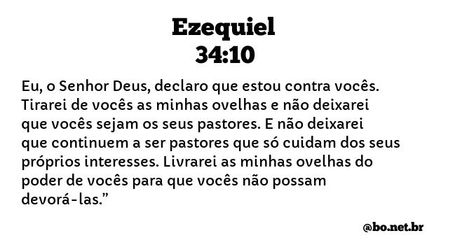 Eu, o SENHOR Deus, declaro que estou contra vocês. Tirarei de vocês as minhas ovelhas e não deixarei que vocês sejam os seus pastores. E não deixarei que continuem a ser pastores que só cuidam dos seus próprios interesses. Livrarei as minhas ovelhas do poder de vocês para que vocês não possam devorá-las. ” (Ezequiel 34:10 NTLH)