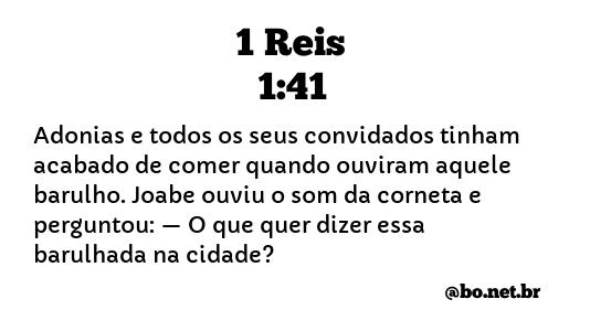 Adonias e todos os seus convidados tinham acabado de comer quando ouviram aquele barulho. Joabe ouviu o som da corneta e perguntou: —O que quer dizer essa barulhada na cidade? (1 Reis 1:41 NTLH)