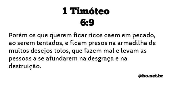 Porém os que querem ficar ricos caem em pecado, ao serem tentados, e ficam presos na armadilha de muitos desejos tolos, que fazem mal e levam as pessoas a se afundarem na desgraça e na destruição. (1 Timóteo 6:9 NTLH)