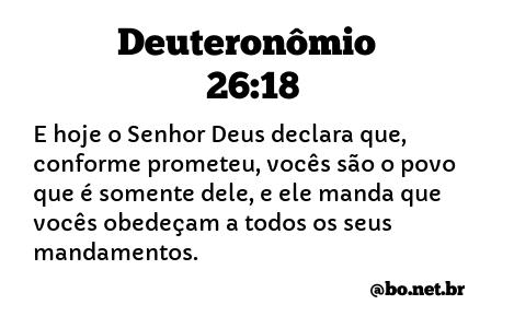 E hoje o SENHOR Deus declara que, conforme prometeu, vocês são o povo que é somente dele, e ele manda que vocês obedeçam a todos os seus mandamentos. (Deuteronômio 26:18 NTLH)