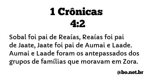 Sobal foi pai de Reaías, Reaías foi pai de Jaate, Jaate foi pai de Aumai e Laade. Aumai e Laade foram os antepassados dos grupos de famílias que moravam em Zora. (1 Crônicas 4:2 NTLH)
