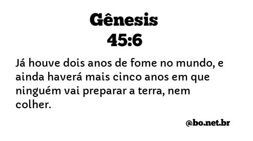 Já houve dois anos de fome no mundo, e ainda haverá mais cinco anos em que ninguém vai preparar a terra, nem colher. (Gênesis 45:6 NTLH)