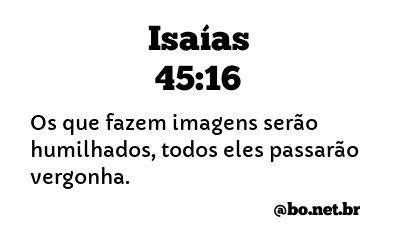 Os que fazem imagens serão humilhados, todos eles passarão vergonha. (Isaías 45:16 NTLH)