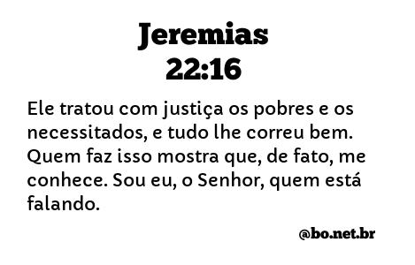 Ele tratou com justiça os pobres e os necessitados, e tudo lhe correu bem. Quem faz isso mostra que, de fato, me conhece. Sou eu, o SENHOR, quem está falando. (Jeremias 22:16 NTLH)