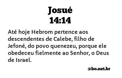 Até hoje Hebrom pertence aos descendentes de Calebe, filho de Jefoné, do povo quenezeu, porque ele obedeceu fielmente ao SENHOR, o Deus de Israel. (Josué 14:14 NTLH)