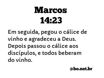Em seguida, pegou o cálice de vinho e agradeceu a Deus. Depois passou o cálice aos discípulos, e todos beberam do vinho. (Marcos 14:23 NTLH)