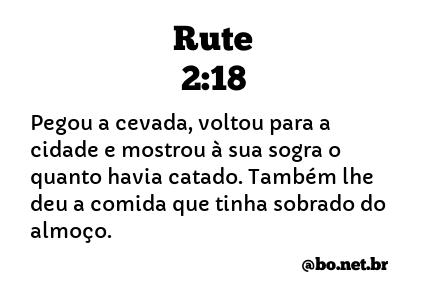 Pegou a cevada, voltou para a cidade e mostrou à sua sogra o quanto havia catado. Também lhe deu a comida que tinha sobrado do almoço. (Rute 2:18 NTLH)