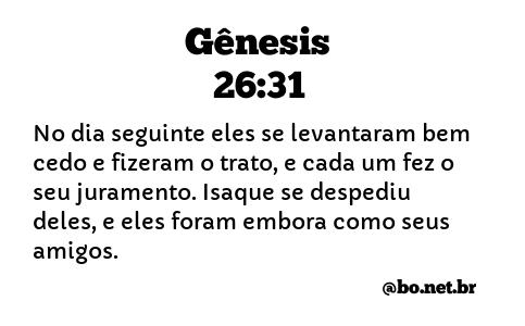 No dia seguinte eles se levantaram bem cedo e fizeram o trato, e cada um fez o seu juramento. Isaque se despediu deles, e eles foram embora como seus amigos. (Gênesis 26:31 NTLH)