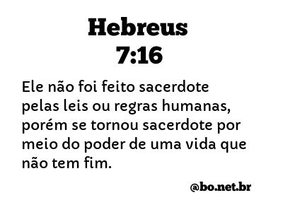 Ele não foi feito sacerdote pelas leis ou regras humanas, porém se tornou sacerdote por meio do poder de uma vida que não tem fim. (Hebreus 7:16 NTLH)