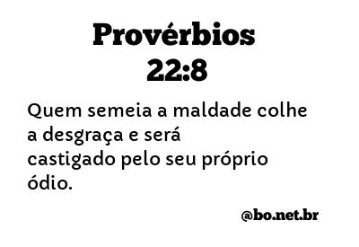 Quem semeia a maldade colhe a desgraça e será castigado pelo seu próprio ódio. (Provérbios 22:8 NTLH)
