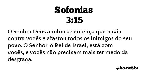 O SENHOR Deus anulou a sentença que havia contra vocês e afastou todos os inimigos do seu povo. O SENHOR, o Rei de Israel, está com vocês, e vocês não precisam mais ter medo da desgraça. (Sofonias 3:15 NTLH)