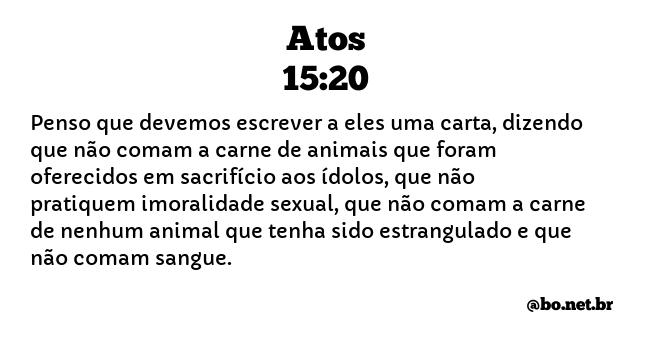 Penso que devemos escrever a eles uma carta, dizendo que não comam a carne de animais que foram oferecidos em sacrifício aos ídolos, que não pratiquem imoralidade sexual, que não comam a carne de nenhum animal que tenha sido estrangulado e que não comam sangue. (Atos 15:20 NTLH)