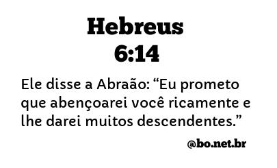 Ele disse a Abraão: “Eu prometo que abençoarei você ricamente e lhe darei muitos descendentes. ” (Hebreus 6:14 NTLH)