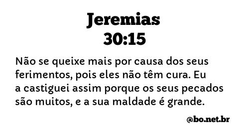 Não se queixe mais por causa dos seus ferimentos, pois eles não têm cura. Eu a castiguei assim porque os seus pecados são muitos, e a sua maldade é grande. (Jeremias 30:15 NTLH)