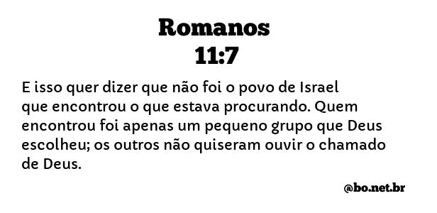 E isso quer dizer que não foi o povo de Israel que encontrou o que estava procurando. Quem encontrou foi apenas um pequeno grupo que Deus escolheu; os outros não quiseram ouvir o chamado de Deus. (Romanos 11:7 NTLH)