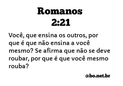 Você, que ensina os outros, por que é que não ensina a você mesmo? Se afirma que não se deve roubar, por que é que você mesmo rouba? (Romanos 2:21 NTLH)