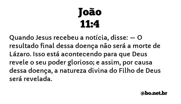 Quando Jesus recebeu a notícia, disse: —O resultado final dessa doença não será a morte de Lázaro. Isso está acontecendo para que Deus revele o seu poder glorioso; e assim, por causa dessa doença, a natureza divina do Filho de Deus será revelada. (João 11:4 NTLH)