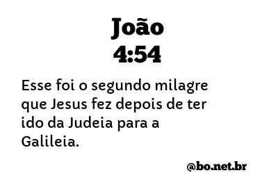 Esse foi o segundo milagre que Jesus fez depois de ter ido da Judéia para a Galiléia. (João 4:54 NTLH)