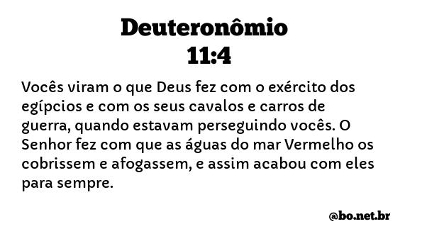 Vocês viram o que Deus fez com o exército dos egípcios e com os seus cavalos e carros de guerra, quando estavam perseguindo vocês. O SENHOR fez com que as águas do mar Vermelho os cobrissem e afogassem, e assim acabou com eles para sempre. (Deuteronômio 11:4 NTLH)