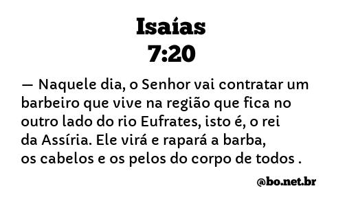 —Naquele dia, o Senhor vai contratar um barbeiro que vive na região que fica no outro lado do rio Eufrates, isto é, o rei da Assíria. Ele virá e rapará a barba, os cabelos e os pêlos do corpo de todos. (Isaías 7:20 NTLH)