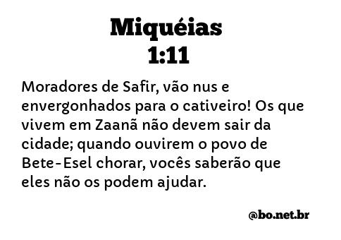 Moradores de Safir, vão nus e envergonhados para o cativeiro! Os que vivem em Zaanã não devem sair da cidade; quando ouvirem o povo de Bete-Esel chorar, vocês saberão que eles não os podem ajudar. (Miquéias 1:11 NTLH)