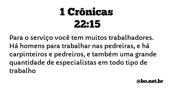 Além disso tens trabalhadores em grande número, canteiros, pedreiros e carpinteiros, e toda sorte de peritos em toda espécie de obra. (1 Crônicas 22:15 AR)