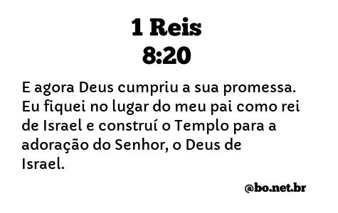 “E o Senhor cumpriu a sua promessa: Sou o sucessor de meu pai Davi, e agora ocupo o trono de Israel, como o Senhor tinha prometido, e construí o templo em honra do nome do Senhor, o Deus de Israel. (1 Reis 8:20 NVI)