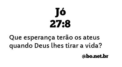 Que esperança terão os ateus quando Deus lhes tirar a vida? (Jó 27:8 NTLH)